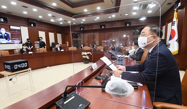 ▲ 홍남기 부총리 겸 기획재정부 장관이 29일 서울 광화문 정부서울청사에서 열린 ‘제13차 혁신성장 BIG3 추진회의’를 주재, 모두발언을 하고 있다. (사진=기획재정부)홍 부총리는 “반도체, 미래차, 바이오헬스 등 BIG3 산업의 집중 육성을 위해 전방위적 지원을 아끼지 않을 것”이라며 “BIG3 산업과 관련한 여러 형태의 재정지원이 올해 4조 2000억원 수준에서 내년 5조원 이상을 반영, 적극 지원해 나가겠다”고 설명했다.