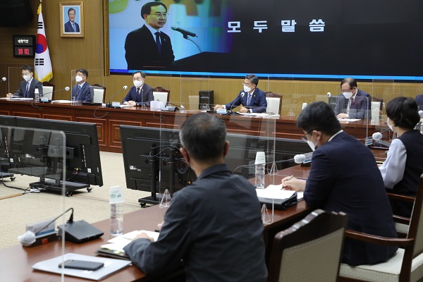 ▲ 문승욱 산업통상자원부 장관이 11일 국방부 대회의실에서 서욱 국방부장관과 제8회 방위산업발전협의회를 공동 주재하며 인사말을 하고 있다. (사진=산업통상자원부)문승욱 산업통상자원부 장관이 11일 국방부 대회의실에서 서욱 국방부장관과 제8회 방위산업발전협의회를 공동 주재하며 인사말을 하고 있다. (사진=산업통상자원부)