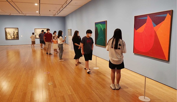 ▲ 대구미술관을 찾은 관람객들이 이건희 컬렉션 특별전 ‘웰컴 홈: 향연 饗宴’ 전시회에서 유영국의 작품 ‘산(1970`s)’을 감상하고 있는 모습.아동 학대 범죄에 대응하고, 피해 아동을 보호하기 위한 예산도 늘어났다. 예산실 직원들이 학대피해아동쉼터를 찾아 실태를 파악하고, 취약아동 보호 간담회 등을 통해 현장의 목소리에 귀를 기울인 덕분이다.