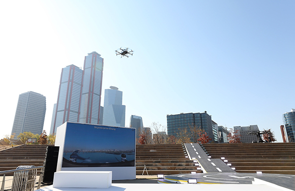 ▲ 지난해 11월 서울 여의도 한강시민공원에서 열린 ‘도시, 하늘을 열다’ 도심항공교통 서울실증 행사에서 미래 교통수단인 ‘유인용 드론택시’가 행사장 주변을 시범비행하고 있다. (사진=국토교통부)운용개념서에는 초기 단계의 서비스 시나리오도 담겨 있다.