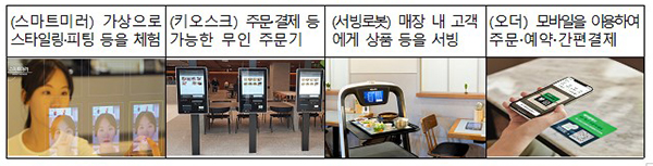 ▲ 스마트상점 기술 사례이번에 선정된 상가 중 울산에서 최초로 선정된 스마트 시범상가인 중구의 ‘웰컴시티’ 상가에는 스마트 미러와 키오스크 등의 도입으로 울산지역의 스마트화를 선도해 나갈 것으로 기대된다.