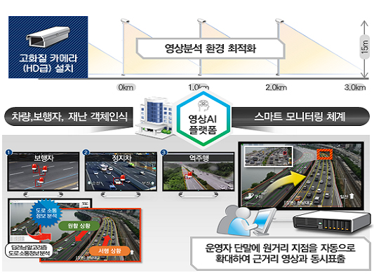 인공지능으로 역주행 등 돌발상황을 감지하는 스마트 CCTV 모니터링 시스템을 주요 구간에 확대하고 실시간 노면상태(결빙 등) 및 장애물(낙석 등)을 검지해 운전자에게 위험정보를 제공하는 도로상태 관리시스템 등을 구축할 예정이다.