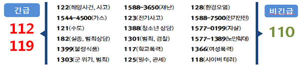 아울러 긴급신고는 112번과 119번, 비긴급신고는 110번만 기억하면 위급 상황에서 보다 쉽게 신고할 수 있고, 어떤 번호로 전화해도 필요한 안전 서비스를 제공받을 수 있게 된 것이다.