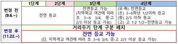 ◆ 11월 22일부터 전국 유·초·중·고교 전면 등교