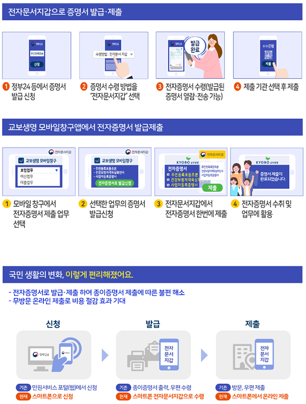 이에 앞서 지난 10월 25일부터는 교보생명 모바일창구 앱을 통해 보험·금융업무 등에 필요한 주민등록표등본 등 13종의 전자증명서를 발급받아 제출이 가능해졌다.