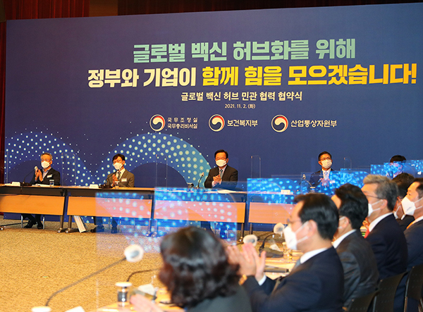 ▲ 2일 개최한 ‘제2차 글로벌 백신 허브화 추진위원회’는 사전행사로 글로벌 백신 허브 민관 협력 협약식 등을 체결했다. (사진=보건복지부)이날 김부겸 국무총리는 “11월은 단계적 일상회복의 시작과 함께 이제 미래를 준비해야 나가야 할 시점”이라며 “지금이야말로 ‘2025년 백신 5대 강국’으로의 도약을 추진할 수 있는 적기”라고 강조했다.