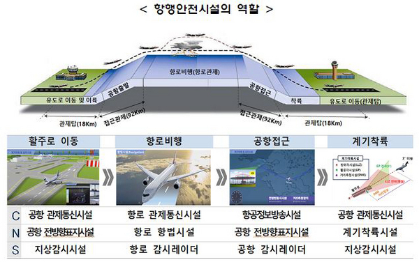 우리나라와 같이 좁은 영공의 경우 증가하는 항공교통을 처리하기 위해서는 첨단 항행안전시설의 역할이 더욱 중요하다.