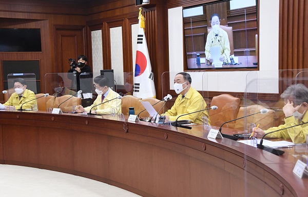 홍남기 부총리 겸 기획재정부 장관이 23일 서울 광화문 정부서울청사에서 열린 ‘제48차 비상경제 중앙대책본부 회의’를 주재, 모두발언을 하고 있다. (사진=기획재정부)