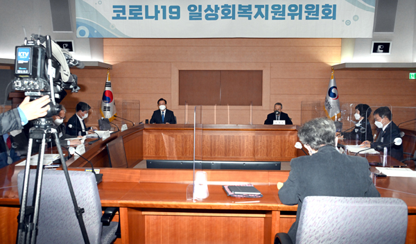 ▲ 김부겸 국무총리가 25일 정부서울청사에서 열린 일상회복지원위원회를 주재하고 있다. (사진=국무조정실)김 총리는 “단계적 일상회복의 첫걸음을 뗀지 4주가 지나고 있다”며 “온전한 회복에는 미치지 못했지만 식당과 상점을 찾는 손님들이 늘면서 많은 소상공인과 자영업자들께서 코로나 이전과 같이 다시 바빠졌고 영화관, 공연장, 스포츠 경기장 등에 관중들이 늘면서 조금씩 활기를 되찾아 가고 있다”고 언급했다.