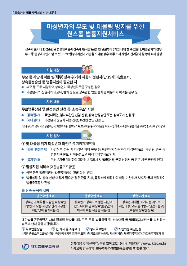 이에 정부는 관련 법률 개정 전에도 상속 관련 법적 도움이 필요한 미성년자를 선제적·주도적으로 발굴해 법률지원을 제공할 수 있는 체계를 마련했다.