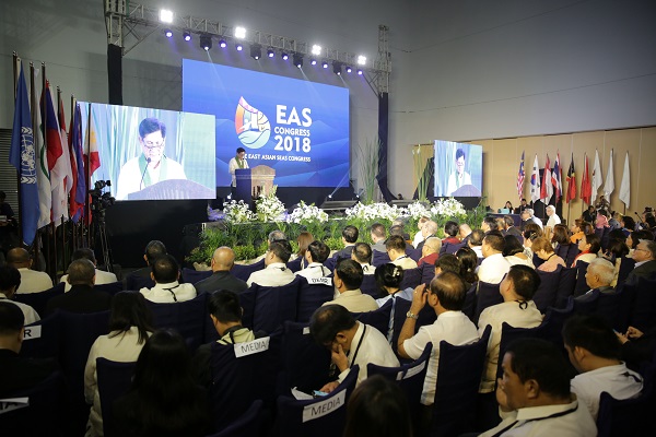 ▲ 지난 2018년 열린 동아시아 해양회의 모습. (사진=해양수산부)올해 회의는 캄보디아 환경부와 프레아 시아누크 주, 동아시아해양환경관리협력기구가 공동주최했으며, ‘희망찬 새로운 10년 그리기’를 주제 아래 영상으로 진행됐다.