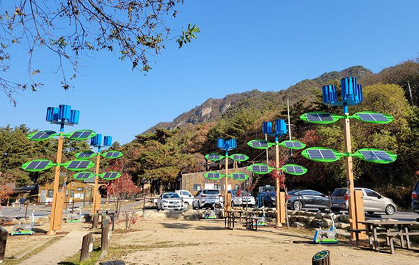 이곳에서도 태양광과 풍력을 통해 전기를 공급하고 소형화면으로 전기사용 가능량·발전량·탄소 저감량 등을 이용자가 확인할 수 있다.