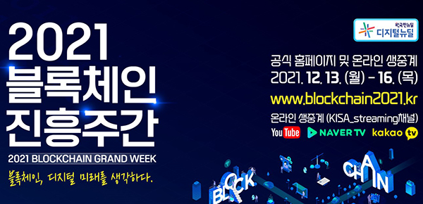 [일간환경연합 신상미 기자]디지털 뉴딜의 일환으로 ‘2021 블록체인 진흥주간’ 행사가 13일부터 16일까지 4일동안 온라인에서 개최한다.