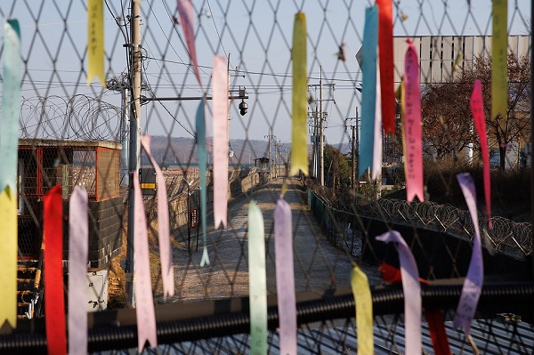▲ 정부는 지난 11월 20일 ‘디엠지(DMZ) 평화의 길’ 강화, 김포, 고양, 파주, 화천, 양구, 고성 등 7개 태마노선을 우선 개방했다. 평화와 통일을 염원하는 리본들. (사진=문화체육관광부 국민소통실)안정적 교류협력을 위한 법·제도적 기반도 강화해 나간다.