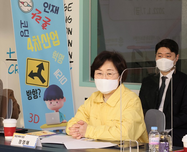 ▲ 정영애 여성가족부 장관이 지난 7일(금) 오후 강동구 청소년방과후아카데미를 방문해 청소년활동 현장의 코로나 방역상황을 점검하고, 청소년정책 방향에 대해 현장 관계자들과 논의하고 있다. (사진=여성가족부)여가부는 그간의 논의를 반영해 올해 청소년정책 체계를 청소년이 주도하는 방향으로 전환하고, 청소년정책의 위상을 강화해 나간다.