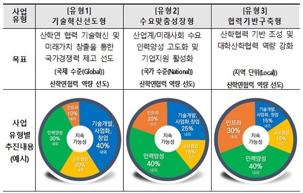 특히 이 유형은 세계적 수준의 산학연협력 역량을 높이기 위해 사업단에 일반대학원이 필수로 참여해야 한다.