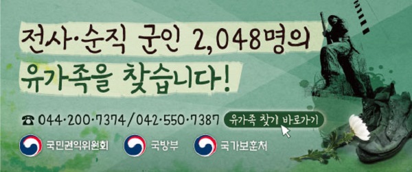 한편, 지난해 12월 15일 출범한 ‘전사·순직 군인 유가족 찾기 특별조사단’은 최대한 이른 시일 안에 유가족을 찾기 위해 지방자치단체와 적극행정 협조체계를 구축한다.
