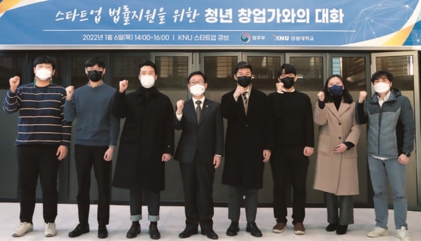 ▲ ▶박범계 법무부 장관이 1월 6일 강원 춘천시 강원대학교 스타트업 큐브에서 열린 ‘스타트업 법률 지원을 위한 청년 창업가와의 대화’ 행사에 참석해 기념촬영을 하고 있다. (사진제공=법무부))[일간환경연합 신상미 기자]앞으로 기업의 일방적인 채용취소로 어려움을 겪는 청년구직자는 정부의 무료 법률 서비스를 이용해 구제받을 수 있게 된다. 2년으로 제한됐던 ‘창업휴학’ 기간도 없어진다.