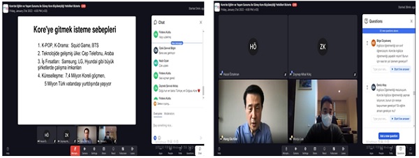 이날 설명회에서 김홍기 주터키한국문화원 유학상담실장은 GKS 장학프로그램 및 한국의 주요 대학, 한국유학의 일반적인 정보 등을 소개했다. 약 320명이 실시간으로 참가했으며, 문의란을 통해 한국유학 등에 관한 질의응답 시간도 진행됐다.