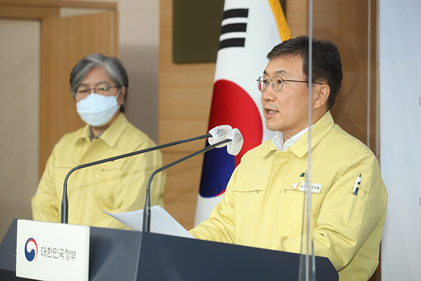 ▲ 권덕철 중앙재난안전대책본부 제1차장(보건복지부 장관)이 정례브리핑을 진행하고 있다. (사진=보건복지부)권 1차장은 “이번 방역과 의료체계의 개편은 한정된 자원의 선택과 집중을 통해 고위험군의 중증과 사망을 방지하고, 경증 환자의 급증에 대응하기 위해 꼭 필요한 조치”라고 강조했다.