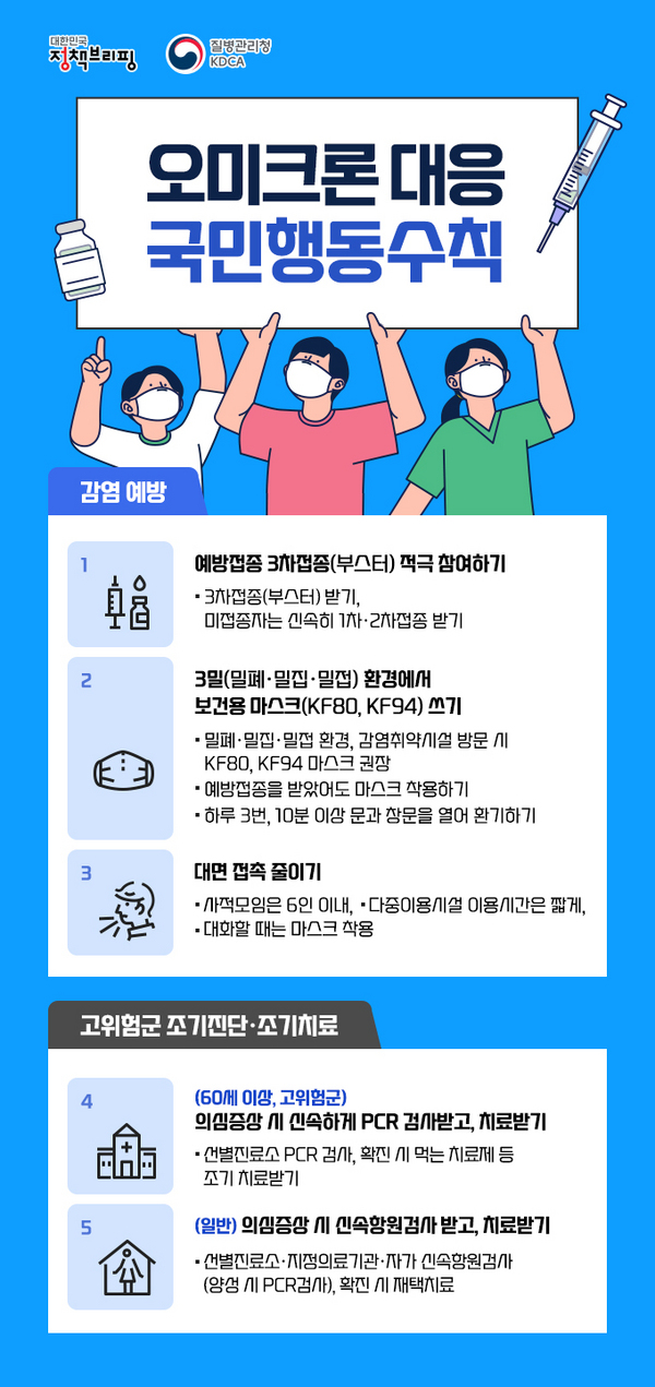 [일간환경연합 한선미 기자]다음은 오미크론의 빠른 확산에 따라 국민행동수칙을 알려드립니다.