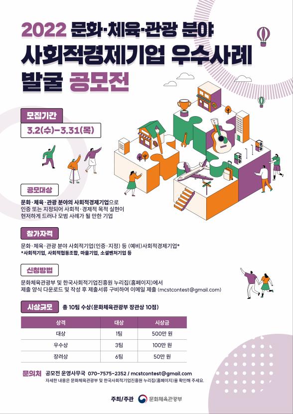 ▲ 2022년 문화·체육·관광 분야 우수 사회적경제 기업 공모전 포스터