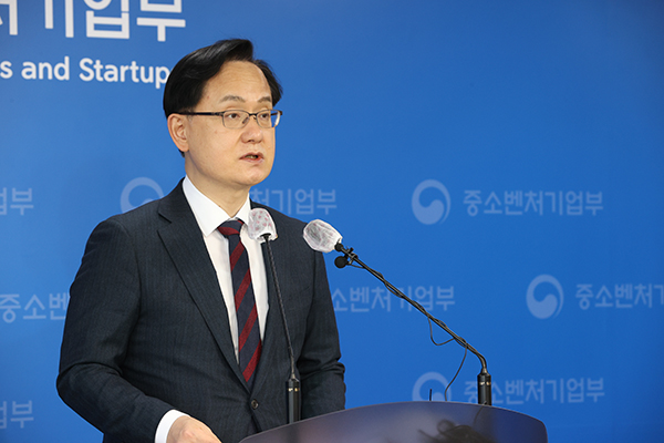 ▲ 강성천 중소벤처기업부 차관이 2일 세종시 중소벤처기업부 중기마루에서 열린 손실보상심의위원회 제10차 회의 결과를 발표하고 있다.(사진=중소벤처기업부)