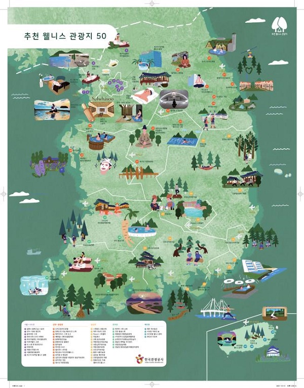 ▲ 추천 치유<웰리스> 관광지<50개소>.문체부 정책담당자는 “치유관광은 코로나 장기화에 따라 일상생활에서 건강하게 사는 법에 대한 관심이 증가하고 있다는 점에서 그 중요성이 커지고 있다”면서 “치유관광 산업이 코로나19라는 위기를 극복함과 동시에 더욱 성장할 수 있도록 전략적으로 지원하겠다”고 밝혔다.