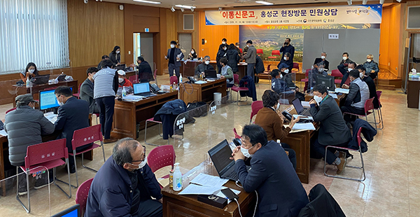 ▲ 2020년 11월 홍성군을 방문해 민원 상담 중인 ‘이동신문고’ 운영 현장. (사진=국민권익위원회)‘달리는 국민신문고’는 국민권익위와 협업기관 관계자로 구성된 상담반이 지역 주민들을 찾아가는 현장중심의 고충민원 해결서비스다.
