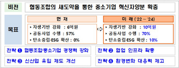 우선 중기부는 공동사업 신설과 강화를 통해 ‘중기조합’과 중소기업의 경쟁력을 강화하기로 했다.