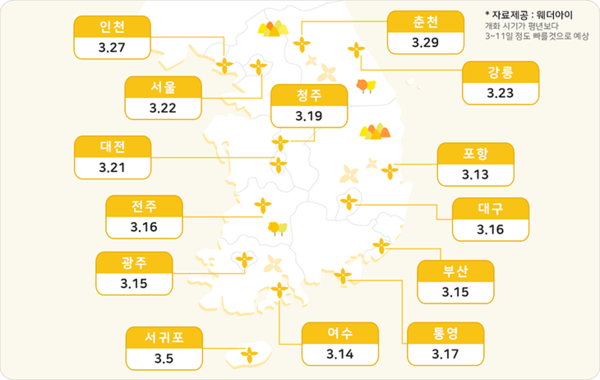 [일간환경연합 장민주 기자]다음은 봄꽂 명소지입니다. 한눈에 보는 봄꽃은 어디쯤 왔을까요. 각지역별 개화시기입니다. 확인하세요!