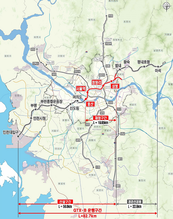 [일간환경연합 장민주 기자]인천 송도에서 서울 용산을 거쳐 경기 남양주 마석을 잇는 수도권 광역급행철도(GTX)-B 노선 사업이 속도를 낸다.