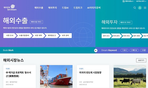 ‘해외경제정보드림’은 각국의 규제현황 및 해외 바이어 정보, 실시간 입찰·발주 정보 및 수출에 필요한 절차 등을 원스톱 서비스로 일괄 제공해 우리기업의 새로운 수출시장 개척을 지원한다.