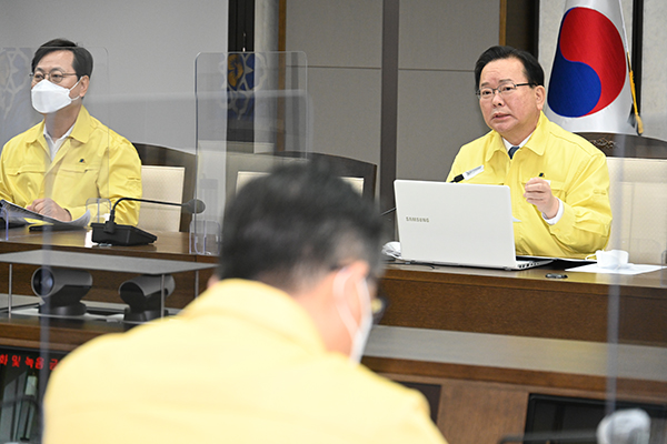 ▲ 김부겸 국무총리가 25일 정부세종청사에서 열린 코로나19 중대본 회의를 주재하고 있다.(사진=국무조정실)김 총리는 “화이자사의 먹는 치료제는 처방 대상과 기관을 지속 확대하면서 최근에는 하루 7000명 넘게 투약되고 있다. 이에 따라 재고량도 빠르게 줄고 있다”고 설명했다.