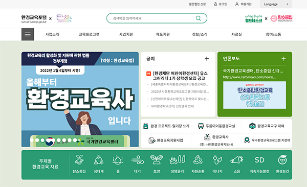 ▲ 환경교육포털 누리집(www.keep.go.kr) 메인화면.환경부는 이번 모집 과정을 통해 환경교육사 자격을 취득하고 환경교육 실무경험을 쌓아 취업으로 연결할 수 있도록 지원할 계획이다.