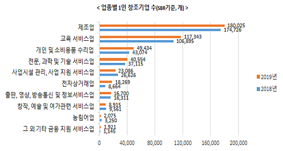또 온라인 기반 업종 증가 등에 힘입어 창의성·전문성을 갖춘 1인 창조기업 수는 2017년부터 3년 연속 증가세를 기록한 것으로 조사됐다.