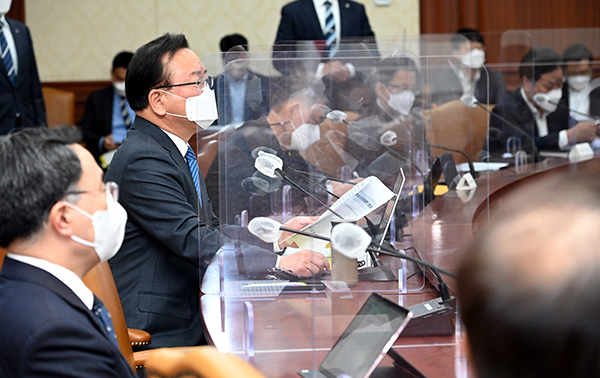 ▲ 김부겸 국무총리가 14일 정부서울청사에서 열린 제144회 국정현안점검조정회의를 주재하고 있다.(사진=국무조정실)