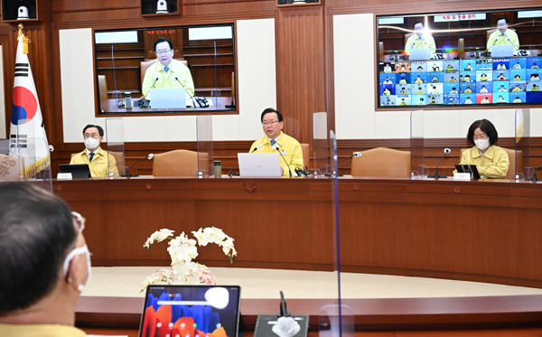 ▲ 김부겸 국무총리가 15일 서울 세종로 정부서울청사에서 열린 코로나19 중대본 회의를 주재하고 있다.(사진=국무조정실)그러면서 “영화관·실내체육시설·종교시설 등 실내 다중이용시설에서의 음식물 섭취 금지조치도 4월 25일부터 모두 해제한다”고 설명했다.