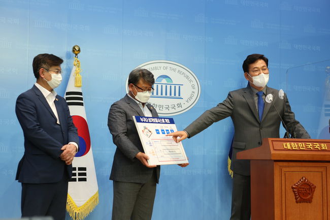 더불어민주당 송영길 서울시장 경선 후보가 29일 국회 소통관에서 서울시내 자영업자 임대료 부담과 이자부담을 절감할 수 있는 `누구나 상가보증시스템` 정책 공약 발표 기자회견을 가졌다.이날 발표된 임대료 경감 대책은 임차인이 보증금대출을 활용해 보증금을 늘리고 비싼 월세를 줄여 월 임대료 부담을 현저하게 낮추는 방안이다.