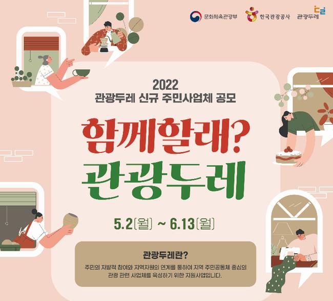 [일간환경연합 장민주 기자] 문화체육관광부(이하 문체부)는 한국관광공사(이하 관광공사)와 함께 주민들이 지속 가능한 지역관광 생태계를 만들어갈 수 있도록 5월 2일(월)부터 6월 13일(월) 오후 2시까지 ‘2022년 관광두레 신규 주민사업체’를 모집한다고 밝혔다.