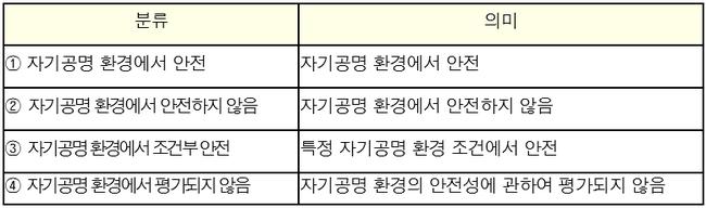 자기공명 환경에서의 안전성 분류