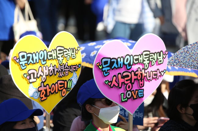 문 대통령은 "여러분, (제가) 성공한 대통령이었습니까"라고 외친 뒤 지지자들로부터 "네"라는 대답을 듣자 "감사하다"고 화답했다.