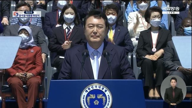 대한민국 향후 5년의 운명을 가름할 제20대 대통령이 새롭게 탄생했다. 앞으로 5년 윤석열 대통령이 이날 취임식을 갖고 새 정부를 이끌게 됐다. (사진=국회방송)1% 미만의 승차로 반쪽으로 출발한 윤 대통령은 마음을 넓게 쓰며 자신을 극복하면서 주인인 국민을 빈틈없이 모셔 대통합의 전기를 마련해야 할 숙제를 안고 출발했다.