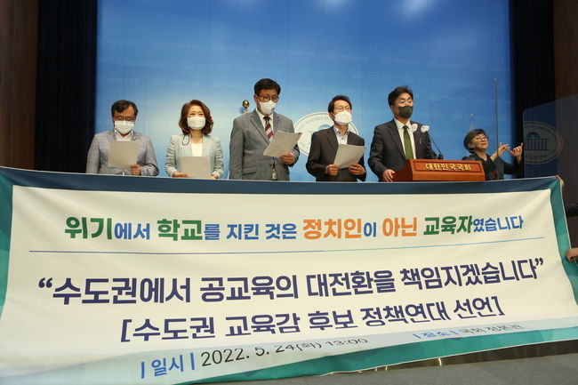 [일간환경연합 장민주 기자] 수도권 진보진영 교육감 후보들은 24일 국회에서 기자회견을 갖고 "정책 연대를 통해 수도권에서 공교육 대전환을 책임지겠다"고 밝혔다.