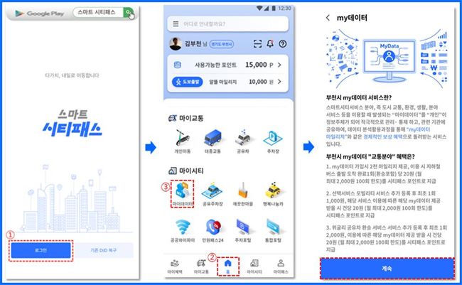 스마트 시티패스 앱 내 `마이데이터 서비스` 이용 방법
