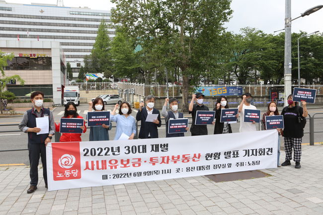 노동당과 민주노총 재벌체제개혁특별위원회 등은 9일 서울 용산구 대통령 집무실 앞에서 기자회견을 열고 국내 30대 재벌이 대규모 사내유보금을 쌓아두고 있다고 밝히면서 이에 대한 정부 대책을 촉구했다.노동당은 "지난해 30대 재벌의 사내유보금이 981조원에 육박한다"며 "코로나 상황에서도 재벌의 사내유보금 증가분이 역대 최대치를 기록했다"고 주장했다.