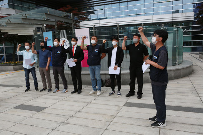 [일간환경연합 한선미 기자] 공공운수노조 이스타항공조종사지부 조합원들은 9일 서울 서초구 서울행정법원 앞에서 이스타항공 부당해고 판결 촉구 기자회견을 열었다.