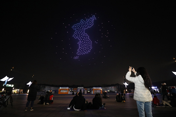 ▲ 지난 2020년 11월 서울 송파구 올림픽공원 평화의광장에서 드론쇼가 펼쳐지고 있다.(사진=국토교통부)