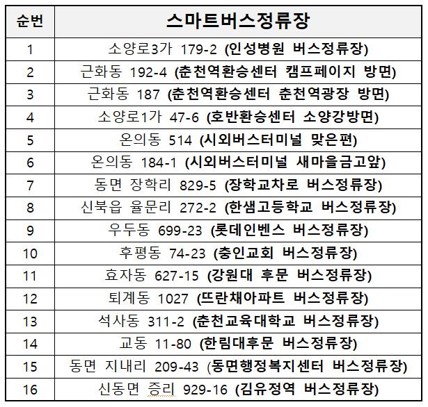 스마트버스정류장(16개소) 위치 (이미지=춘천시)