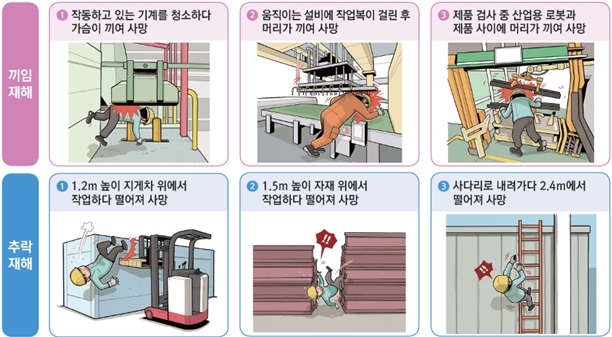 상반기에 발생한 사고의 경우, 수행사업에서는 추락, 끼임, 깔림, 화재 사고가 각 1건 발생했으며, 발주공사에서는 추락(5건)과 끼임(3건) 사고가 대부분을 차지했다.